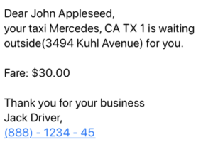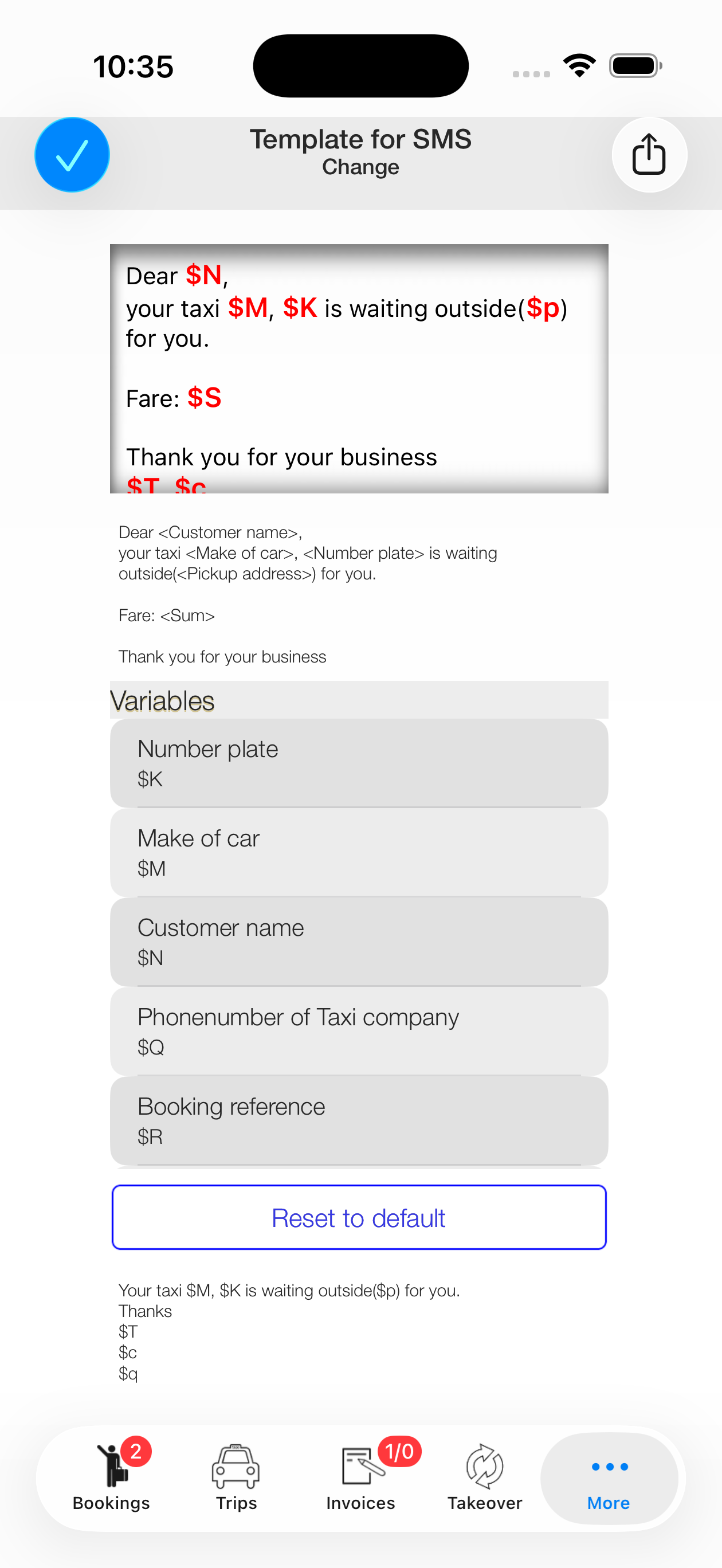 The app Taxi Data Manager provides a mechanism to customize the text. This is a preview of version 4.0, that will incorporate more support for iOS 26 and adds integrated support for WhatsApp. This will be the first version that can sende E-invoices.